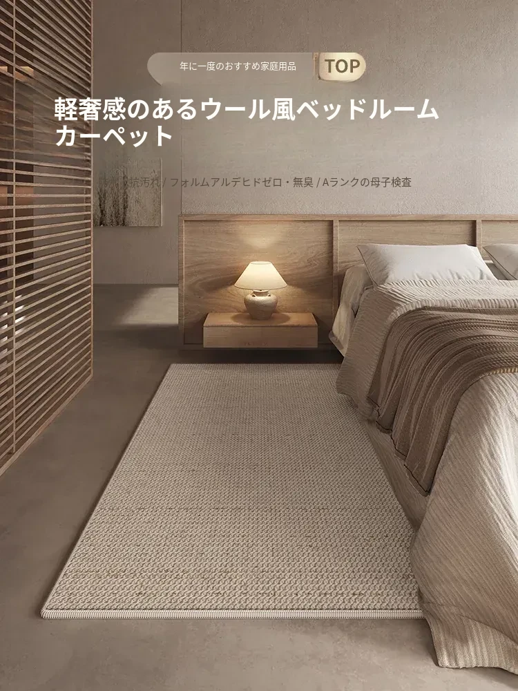 洗える防水デザイン!2025年新作の高級寝室専用カーペット。ベッドサイド・下にぴったりフィット、手間いらずでお手入れ簡単。上質な空間を演出し、心地よい眠りをサポートします!