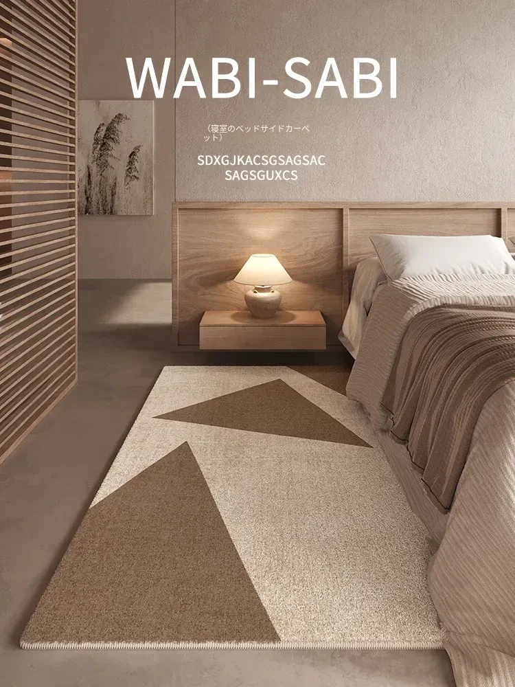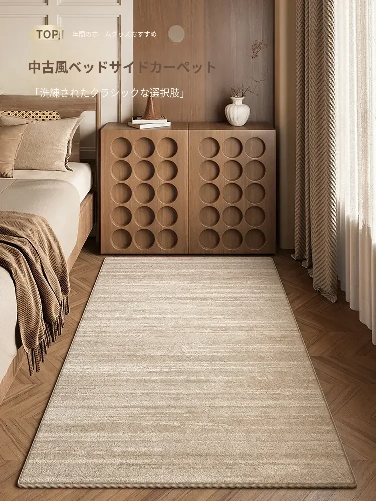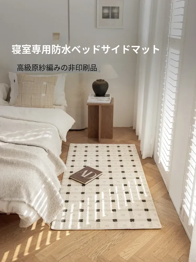 2025年新作!シンプルで侘寂の美を感じるベッドサイドカーペット。防水&汚れに強く、滑り止め付きで安心。リビングや窓辺にもぴったりな快適マット。おしゃれで機能的な空間を演出!